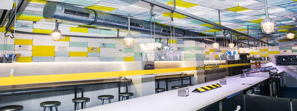 La materia prima manda en Sala de Despiece, un local en el que el interiorismo busca ensalzar la esencia del producto, convertirlo en el protagonista absoluto. Un espacio blanco e impoluto, inspirado en las zonas de corte de las carnicerías o pescaderías, que el equipo mantiene con sus batas blancas y apenas alteradas por detalles que, de nuevo, guiñan al oficio de los carniceros o pescaderos.