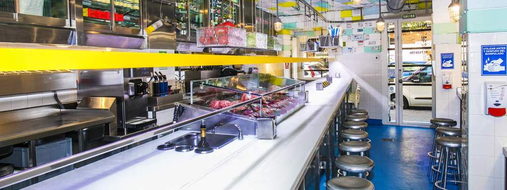 En Sala de Despiece, su barra trata de rendir homenaje al tradicional tapeo del barrio de Chamberí: es una continuación de la cocina vista, en la que los ingredientes de la carta apenas se transforman para mantener esta filosofía.