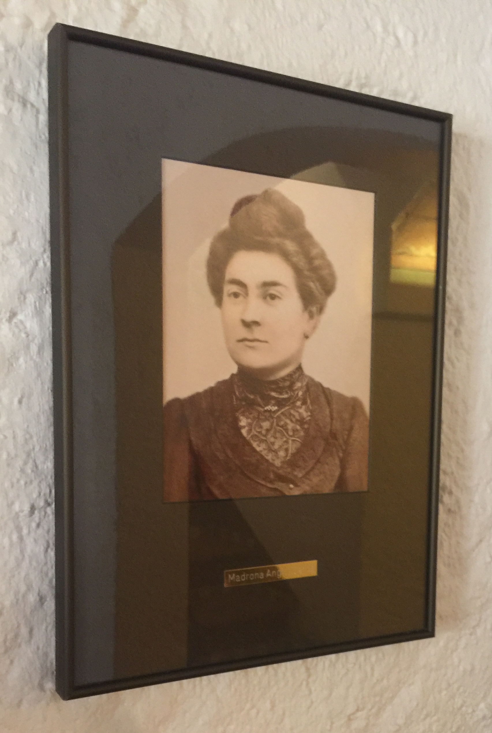 La última propietaria se llamaba Madrona Anglí y Cerdà, y su nombre escrito a pluma de tinta en la antigua escritura, inspiró el nombre. Junto al viejo piano de la entrada podéis encontrar su retrato.