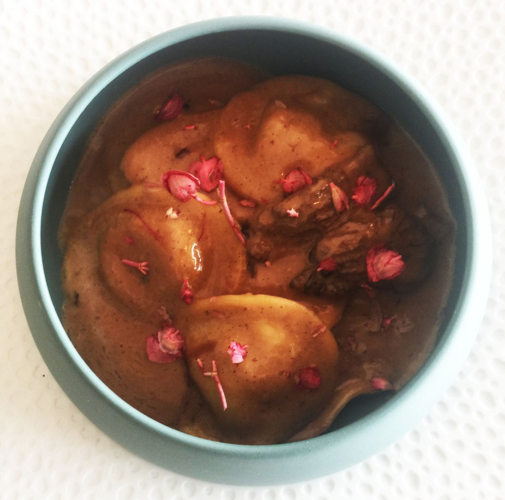 Y de esta maravilla de plato, así como de todos los demás, se ocupa Nadia. Compañera de vida de Joan y reina de la cocina, que, tras trasladarse por amor a Catalunya desde su Rusia natal (en concreto desde Astrakán una importante ciudad del sur de la Rusia europea a orillas del Caspio), y con escasos conocimientos de cocina hace unos años, se ha convertido en una más que notable chef con elaboraciones que a su belleza unen la perfección en cuanto a sabor y equilibrio. Altísimo nivel.