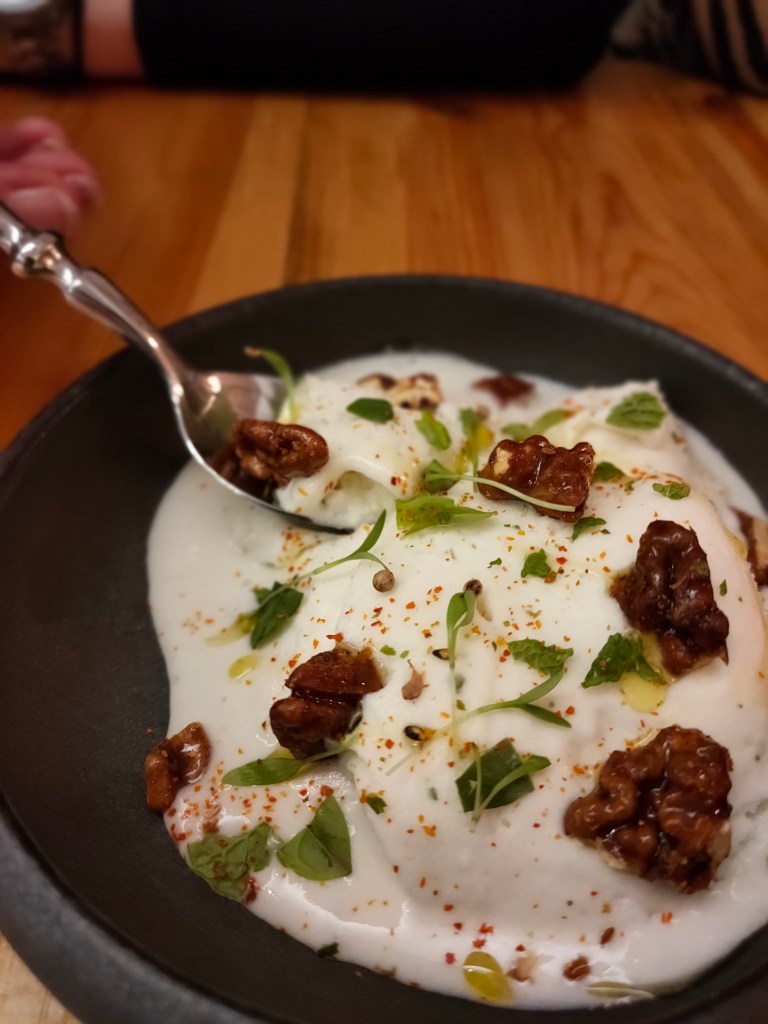 Nosotros iríamos más lejos y lo definiríamos como un local de pequeñas exquisiteces que a nuestro juicio van más allá de una simple tapa (y maravillosa, de las que somos fans por otro lado) ya que el nivel culinario y creativo es francamente alto, con composiciones de fusión de distintas cocinas oriental, (simpático nigiri de fuet, por ejemplo) mejicana, y por supuesto mediterránea. Se ubica en el centro de Barcelona, casi esquina con la bulliciosa Gran vía y a escasos metros de la Pza. de España, lo que lo hace muy accesible. La sencilla pero equilibrada carta se estructura en: Barra fría, barra caliente, arroces y postres y cuando se recupere la normalidad, casi con toda seguridad, recuperarán también el fantástico menú degustación de mediodía a un inmejorable precio de 28€ (al menos hasta antes de las restricciones) y que es absolutamente recomendable, con platillos tan sabrosos como los cogollos asados con César de olivas, o los intensos churros de bacalao con espuma de alioli.