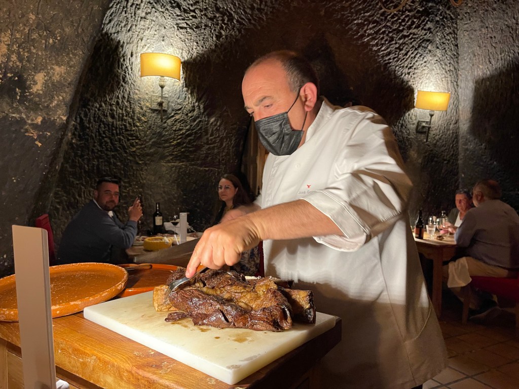 Nosotros tuvimos la suerte que fuera el propio José Gordón quien se encargará personalmente de trinchar tu chuleta y colocarla sobre un plato de barro untado con su propia grasa, hay que probarla tal y como te la sirvan, no sangra y su tono parduzco nada tiene que ver con lo que estamos acostumbrados.