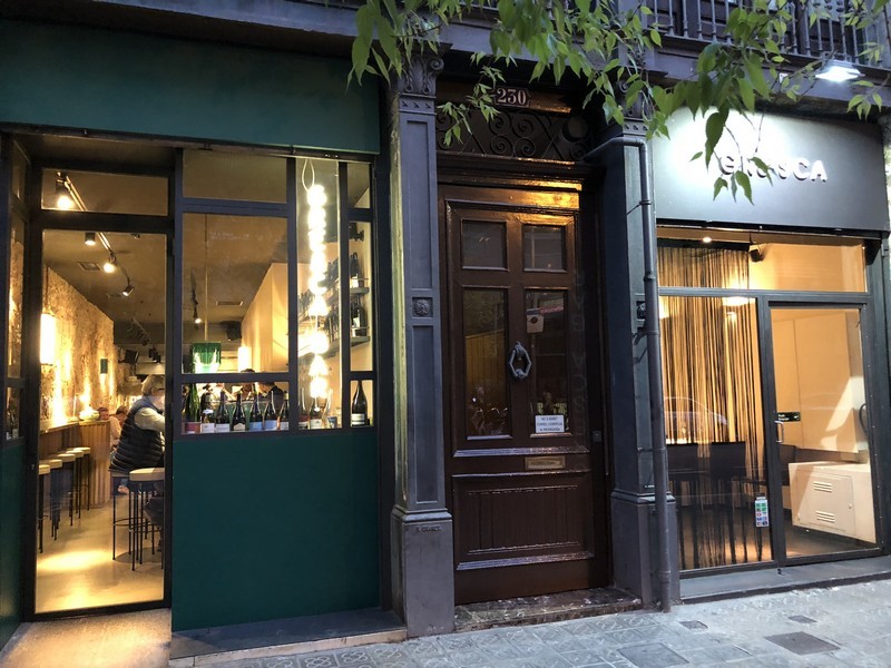 Cuando, hace un tiempo, los chinos que regentaban el restaurante adjunto a su Gresca original accedieron vender, no se lo pensaron y desdoblaron el Gresca en Gresca Bar, con una importante oferta de vinos naturales y platos que enganchan. Fue una solución magnífica: una cocina abierta que comunica los dos espacios, Gresca y el Gresca Bar. Y, como pasarela o continuidad, una barra para seis afortunados que, metidos en la cocina, observan el devenir de los cocineros y sus maneras de emplatar.