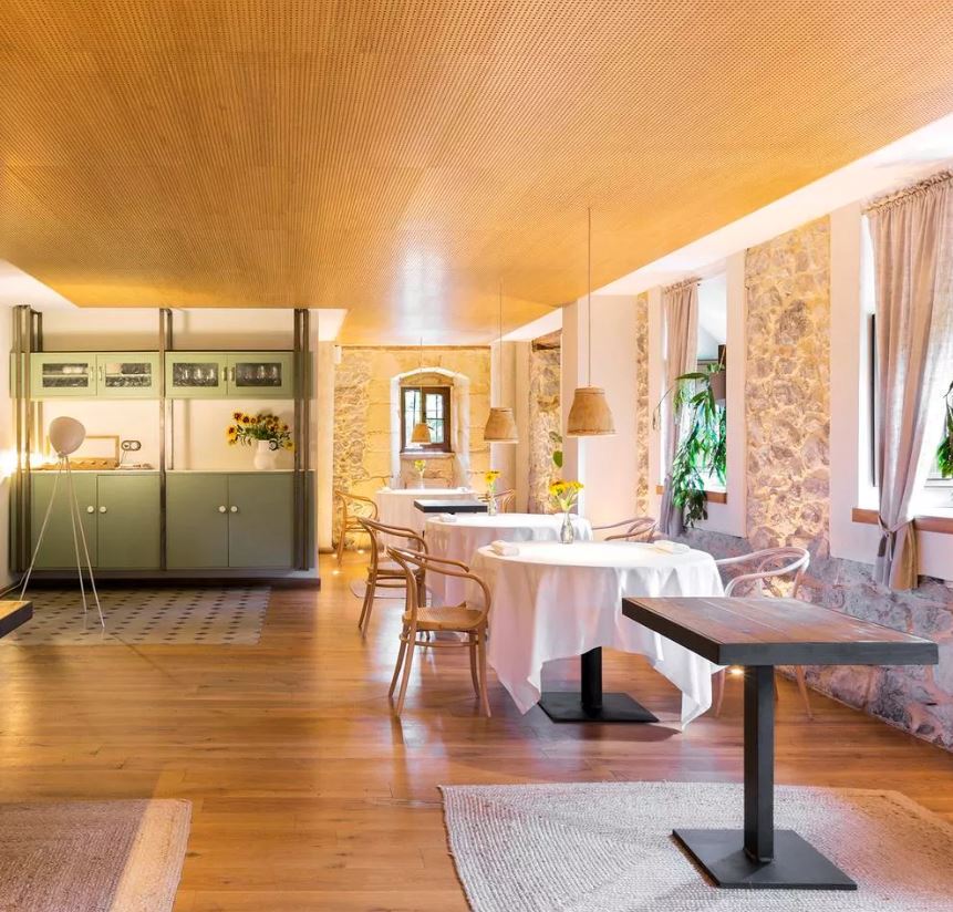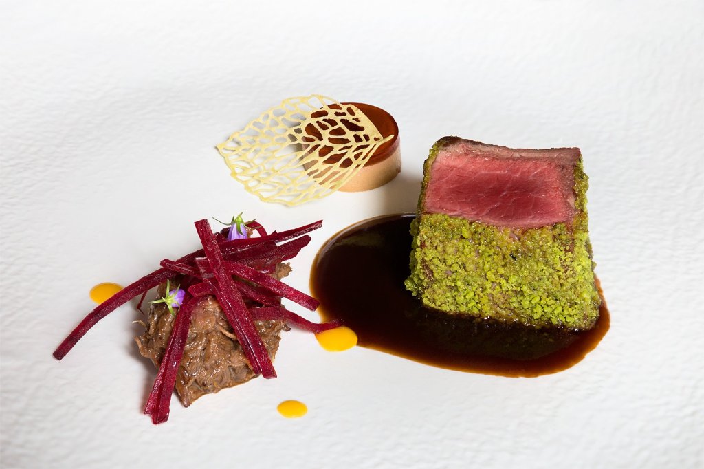 El comedor es espacioso, escuetamente decorado, pero muy agradable. Una sopa de remolacha, crema de boletus, un pescado y una carne en tres texturas, cuanto menos curioso.