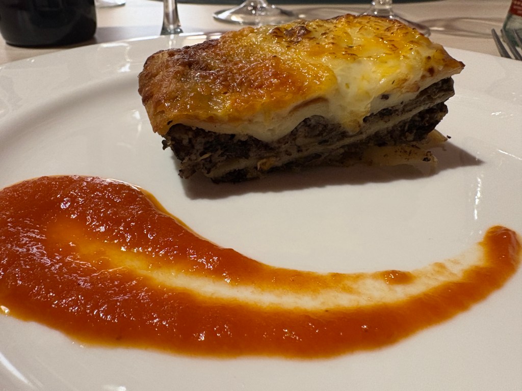 - Su lasaña de morcilla y setas